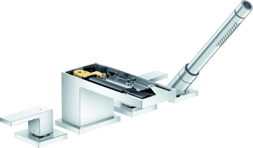 - consisting of: 4-hole bath rim fitting, hand shower, Secuflex hose fitting, shower head holder