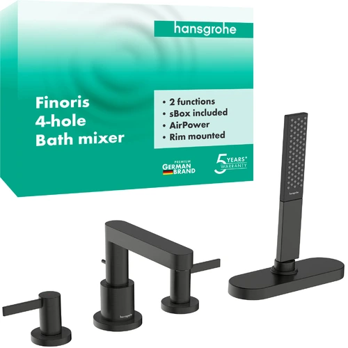 hansgrohe Finoris 4-hole bath rim mixer with hose box (sBox), projection 152 mm