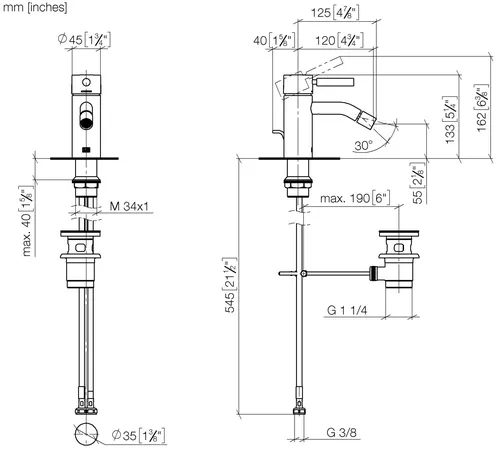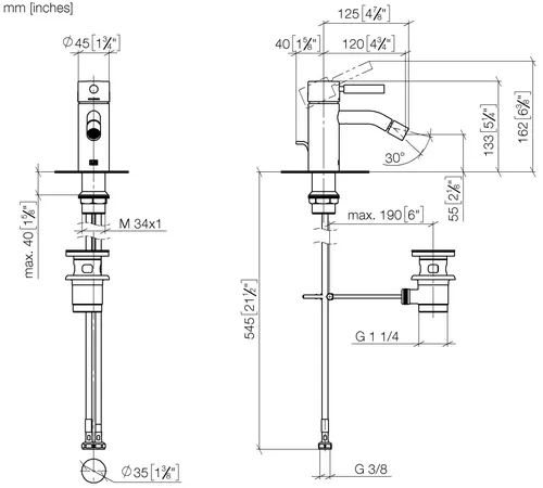 Dornbracht META single-lever bidet mixer with pop-up waste, 125mm projection