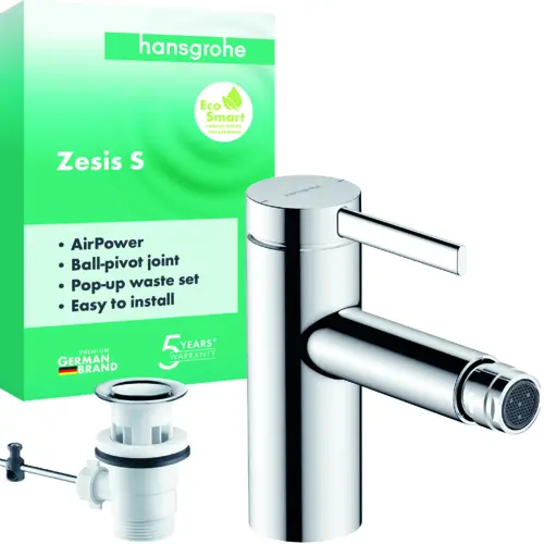 hansgrohe Zesis S single lever bidet mixer with drain set, 122mm projection