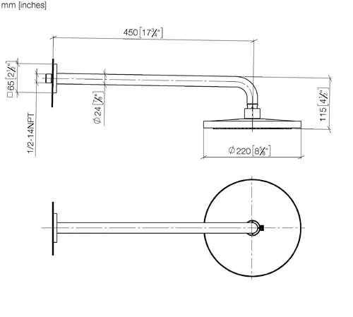 Dornbracht rain shower with wall connection, projection 450mm, Ø 220mm