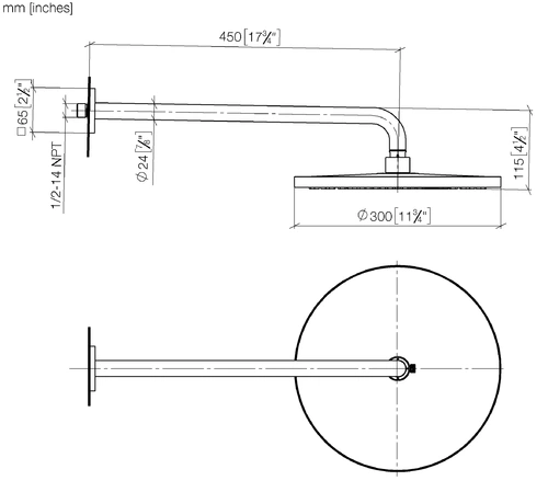 Dornbracht rain shower with wall connection, projection 450mm, Ø 300mm