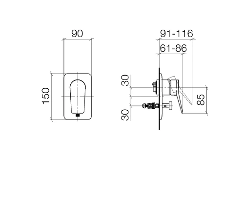 - 1 x concealed single-lever mixer with diverter