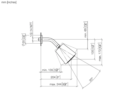 - 30° swivelling ball joint