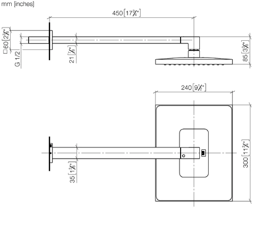 Dornbracht rain shower with wall connection, 450mm projection