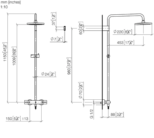 Dornbracht Showerpipe with shower thermostat, without hand shower, 450mm overhead shower, 220mm overhead showers