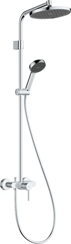 - Consists of: Shower bar, overhead shower, hand shower, hand shower holder, single-lever shower mixer, shower hoses