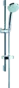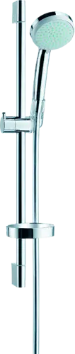 - consists of: Hand shower, Shower bar, Shower hose, Slide, Soap dish