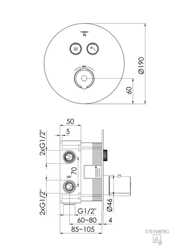 Steinberg Seriesss 390 prefabricated installation set, for concealed thermostat 1/2, pushtronic, for 2 consumers, round