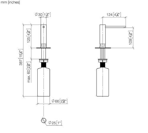 Dornbracht dispenser without rosette, projection 124mm