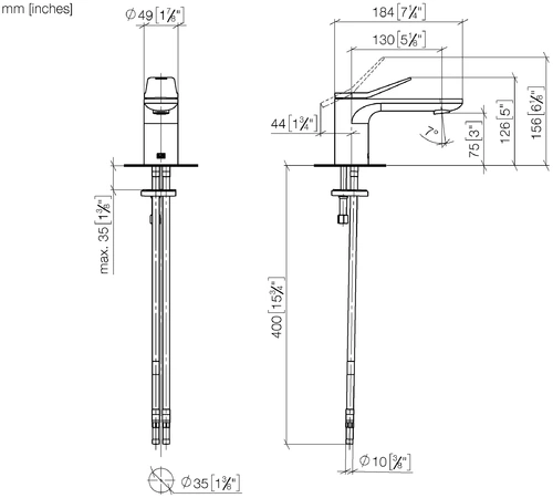 - Height to aerator 75 mm