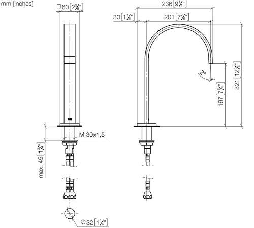- 1 x pedestal washbasin spout with drain set