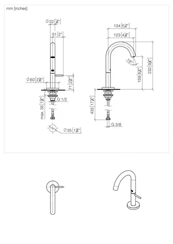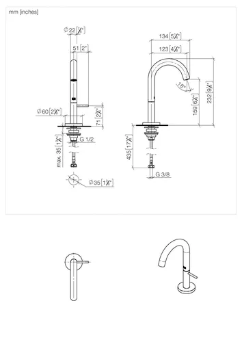 - Tap height 232 mm