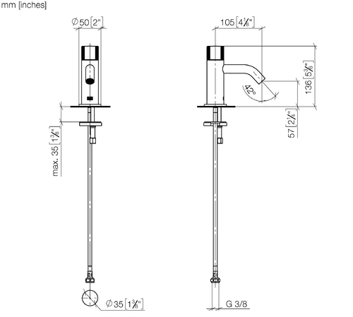 - Tap height 136 mm