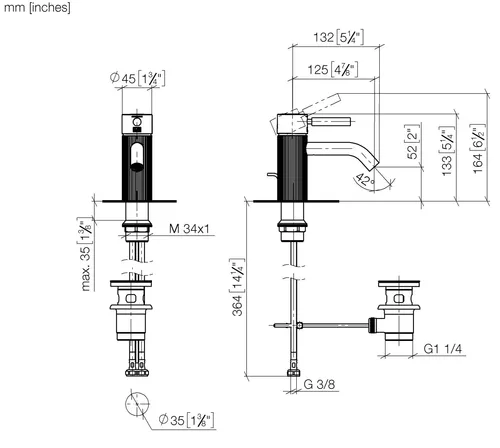 - Tap height 135 mm