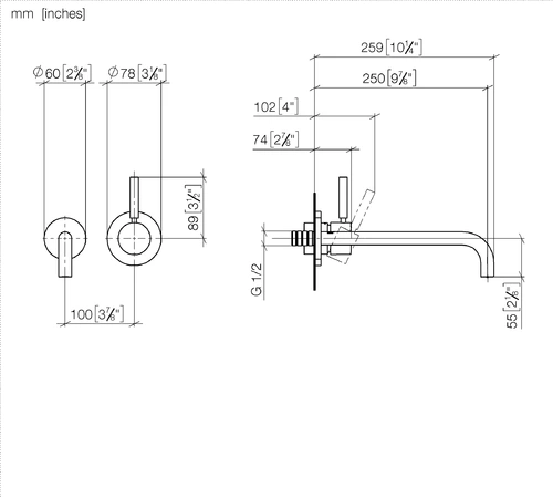 Dornbracht META wall-mounted single-lever basin mixer without drain set, projection 250mm, fixed spout