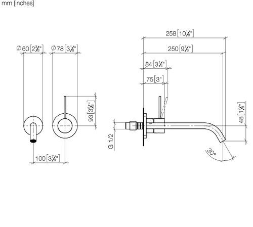- 1 x wall-mounted single-lever basin mixer