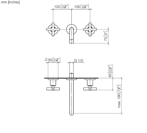 Dornbracht TARA wall-mounted washbasin mixer without drain set, 190mm projection