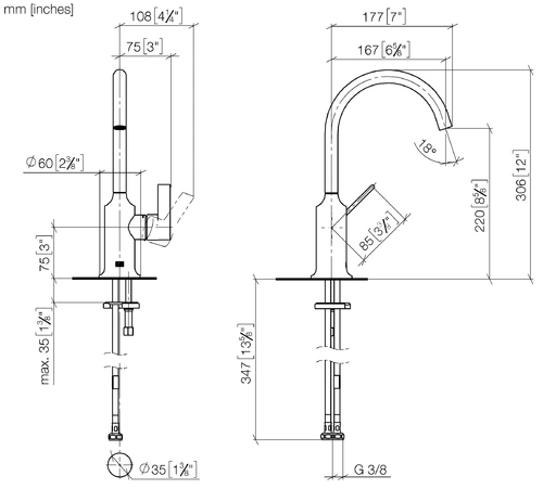 - Tap height 306 mm