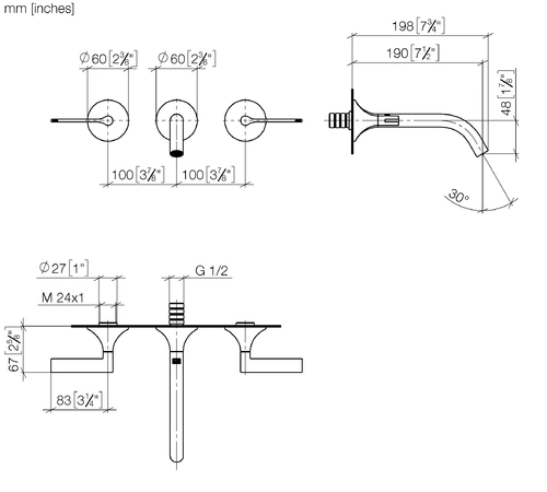 - 1x wall-mounted washbasin mixer