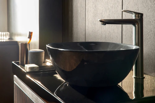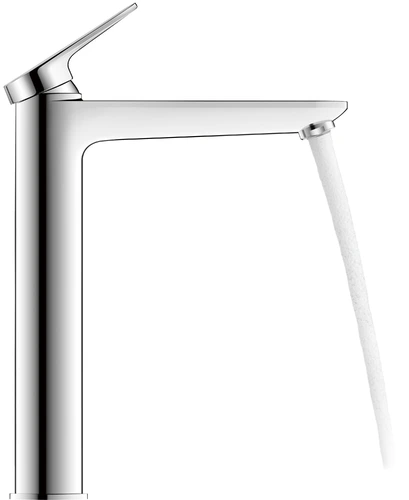 - Faucet with raised spout for generous freedom of movement between basin and faucet