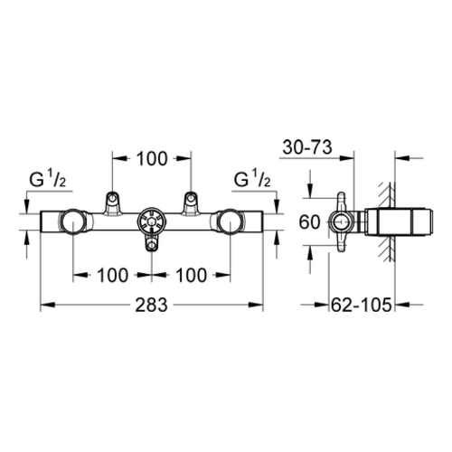 Grohe two-hole concealed Universal built-in body, for 3-hole basin mixer
