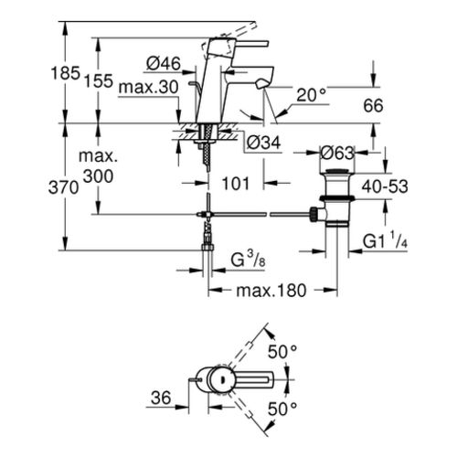 Grohe Concetto single-lever basin mixer, S-size, 101 mm projection, drain set, chrome