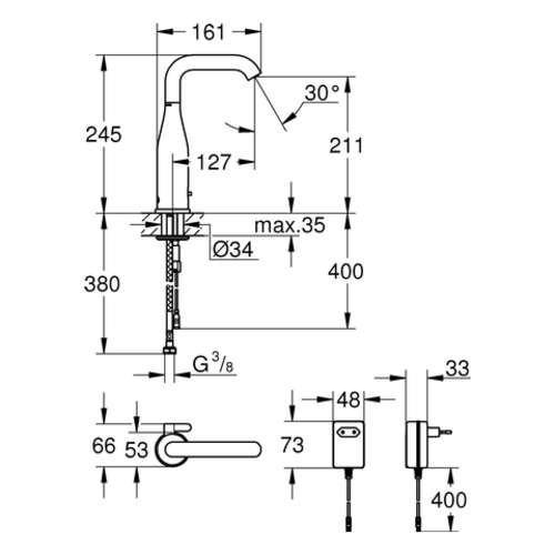 Grohe Essence E infrared electronics for washbasins, projection 161mm, mains operation, various programmes, with mixer