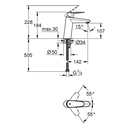- 1 x single-lever basin mixer, M-size