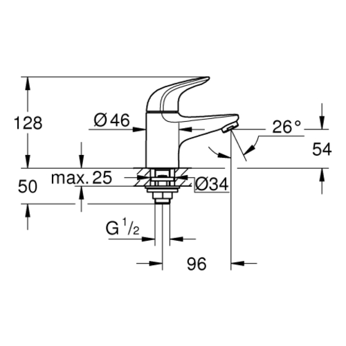 Grohe Euroeco cold water tap, XS size, 96 mm projection