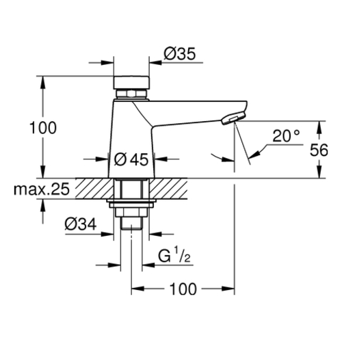 Grohe Euroeco CT self-closing cold water tap, without mixer, projection 100mm