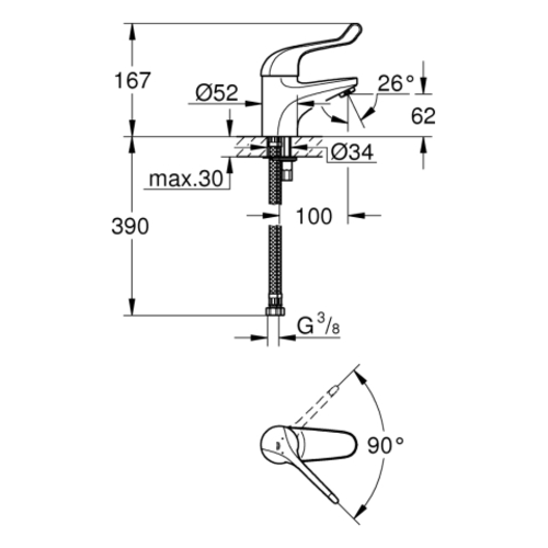 Grohe Euroeco Special safety mixer tap, projection 100mm, without drain set