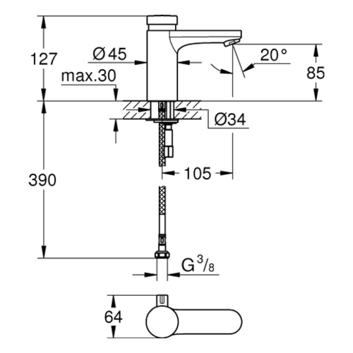 Grohe Eurosmart CT self-closing basin mixer, with mixer, 105mm projection, temperature limiter, without drain set