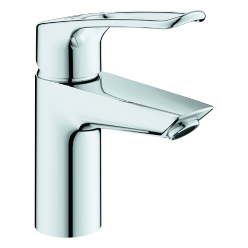 Grohe Eurosmart single-lever basin mixer, S-size, 119mm projection, push-open drain set, open lever handle