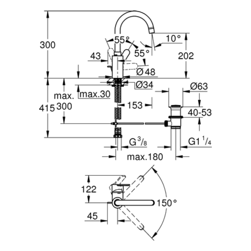- Tap height: 300 mm