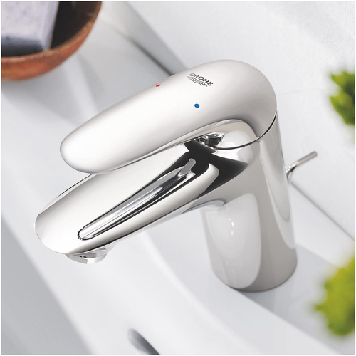 Grohe Wave single-lever basin mixer, S-size, 110 mm projection, drain set, EcoMode