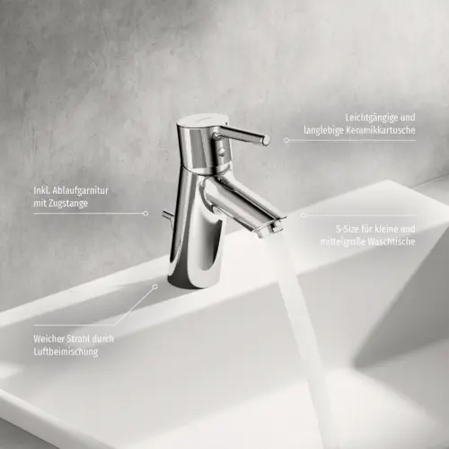 HANSA HANSAVANTIS basin mixer, with drain set, pin lever, projection 109mm, chrome