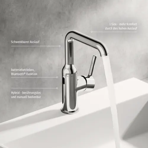 HANSA HANSAVANTIS Style basin mixer, Bluetooth, 3V, hybrid, without drain set, projection 147mm