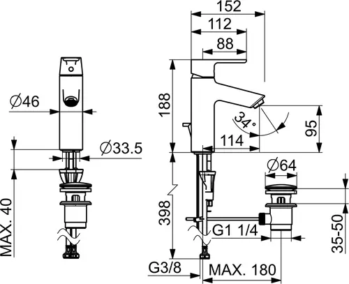 HANSA HANSAVANTIS XL basin mixer, with drain set, 114mm projection, chrome