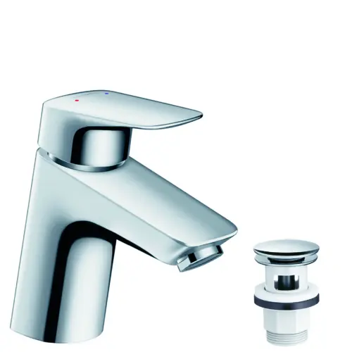 hansgrohe Logis basin mixer, ComfortZone70, for low pressure, push open drain set, 107mm projection, chrome