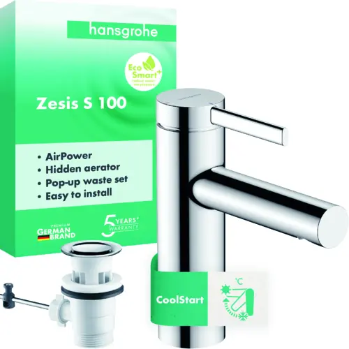 hansgrohe Zesis S single-lever basin mixer 100 CoolStart with drain set
