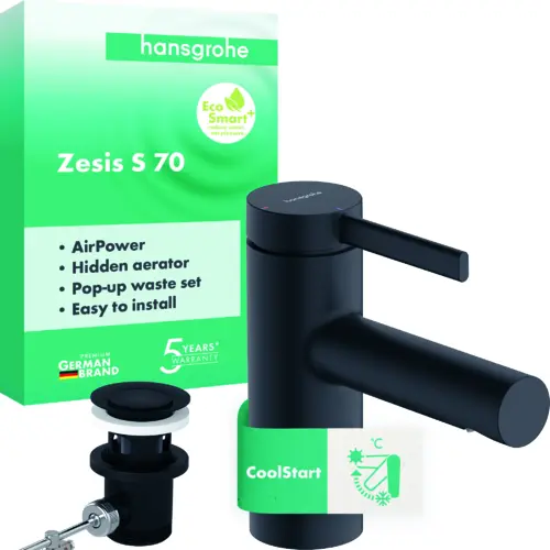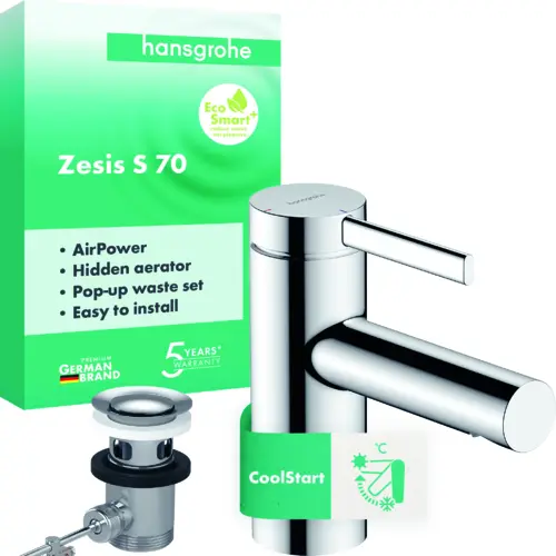 hansgrohe Zesis S single lever basin mixer 70 CoolStart with metal drain set