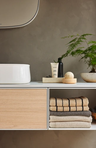 Duravit Zencha console washbasin base, 1300x550mm, 1 drawer, open compartment right, cutout left