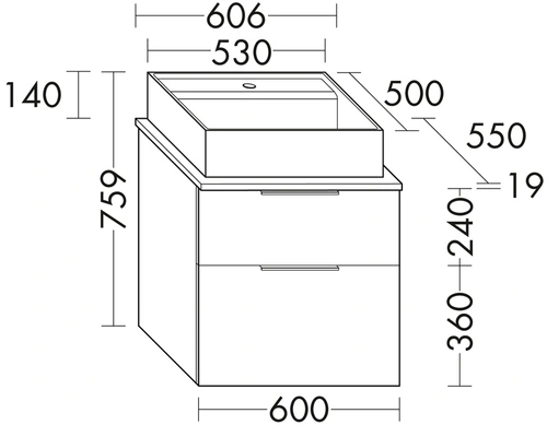 - WxDxH: 606x550x600 mm