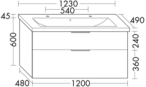 - 1 x ceramic washbasin with 2 tap holes, including washbasin vanity unit