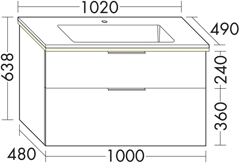 burgbad Eqio mineral cast washbasin including washbasin vanity unit with LED lighting, 1020x490x638mm