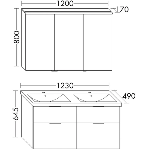 - consisting of mirror cabinets, ceramic double washbasins, washbasin vanity unit ( SPGS120L + SEYT123 )