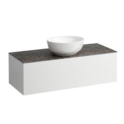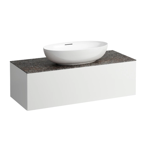 LAUFEN Il Bagno Alessi drawer unit, 1 tap hole, Marrone Naturale stone top, center cutout, 120x50x37cm, 1 drawer