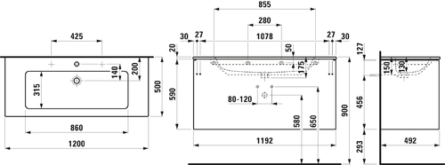 LAUFEN Pro S Set Base 1200, washbasin, 2 tap holes, overflow, incl. vanity unit, 2 drawers, 1200x500mm
