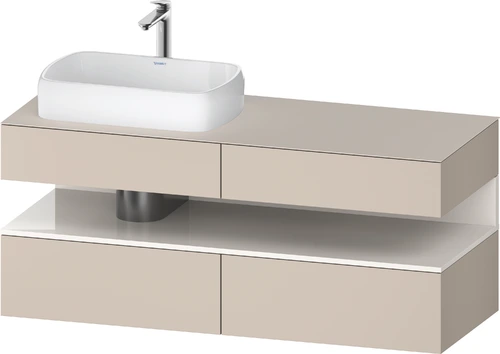 Duravit Qatego console vanity unit, 2 drawers, 2 drawers, cutout left, 1400x550x600mm, niche white high gloss